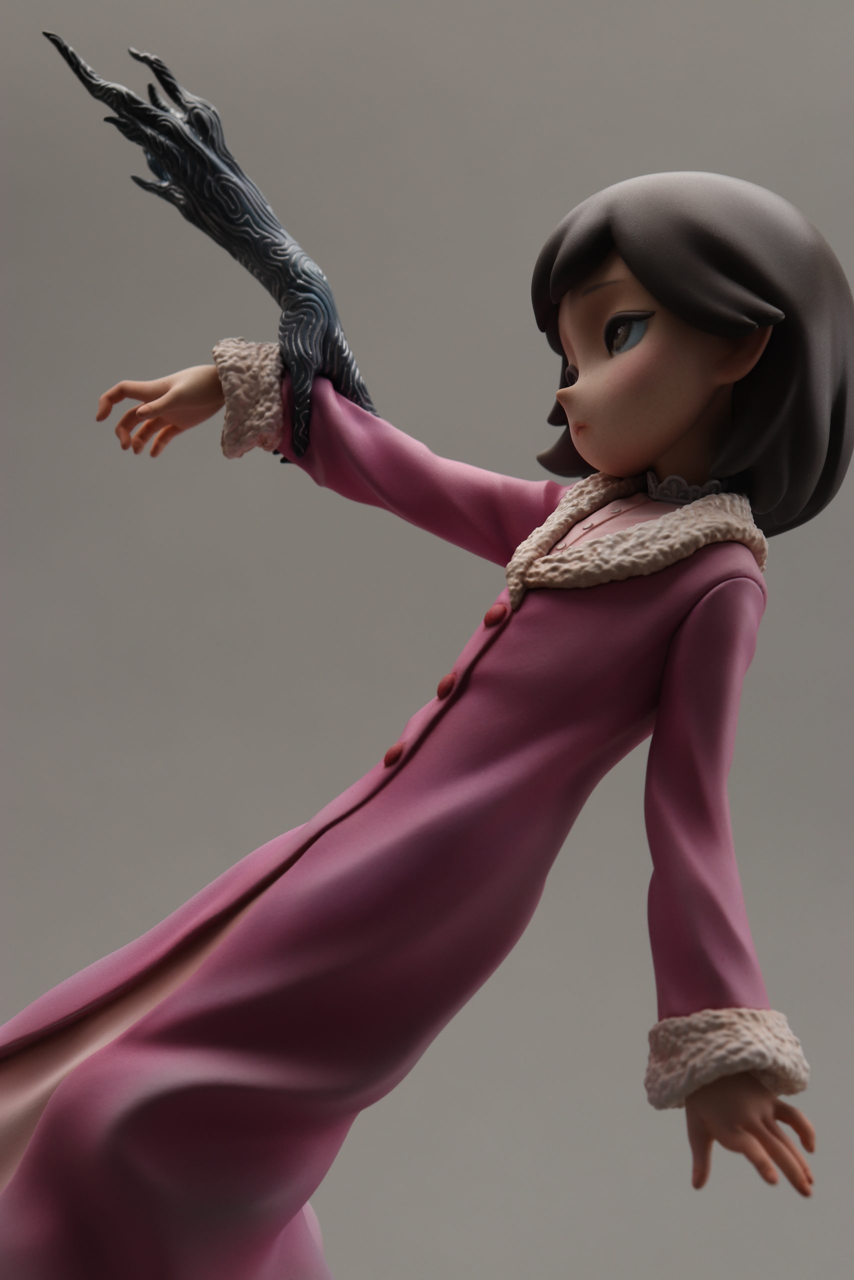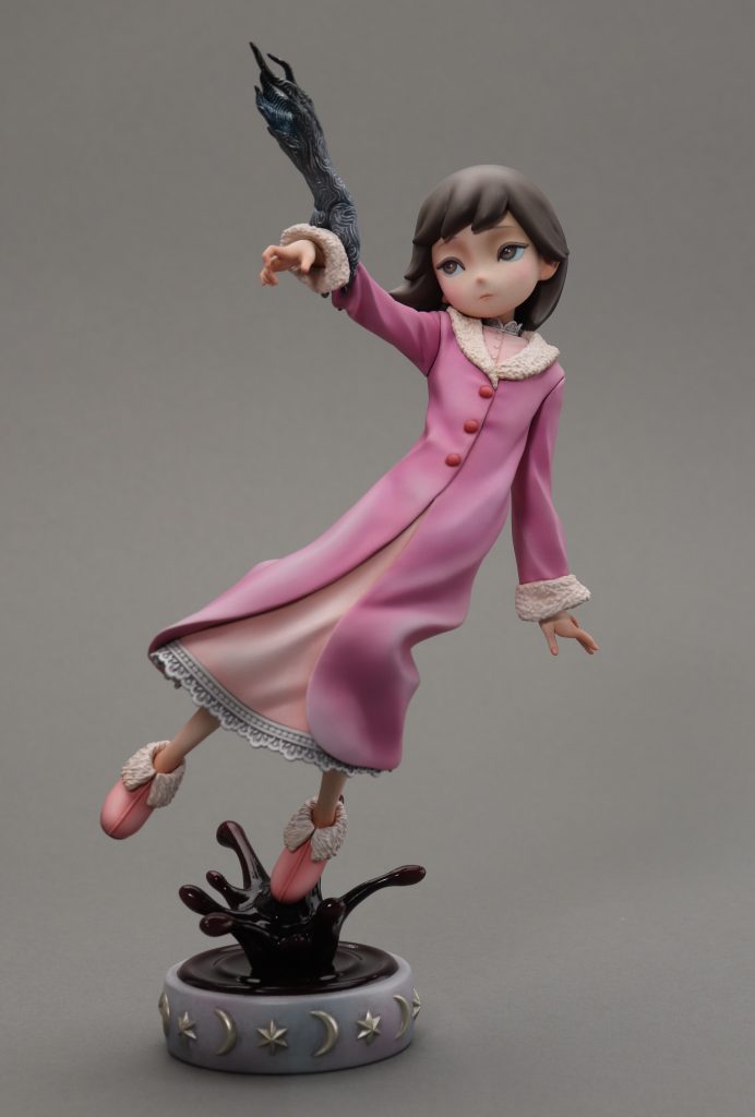 「A little spooky night -beginning-」 2023 夢うつつの中、何かに手を引かれ―― -premonition-と共に「夜」をテーマにした連作です。 作品集「BLINK」のための作り起こし作品です。 ZBrushで造形 phrozen sonic mighty 8kで出力 ラッカー・エナメル塗料で彩色 全高195mm