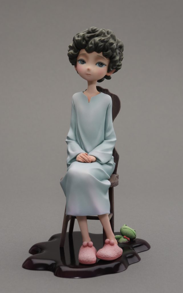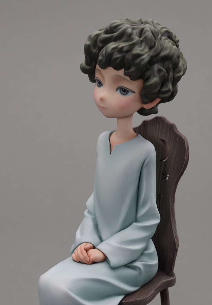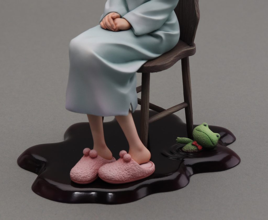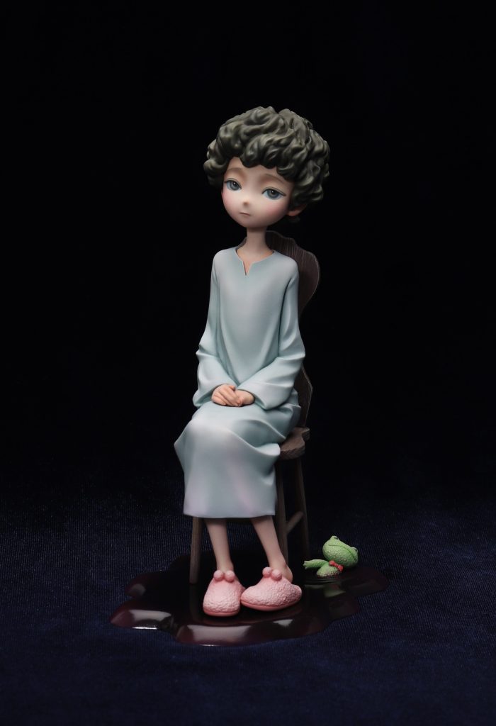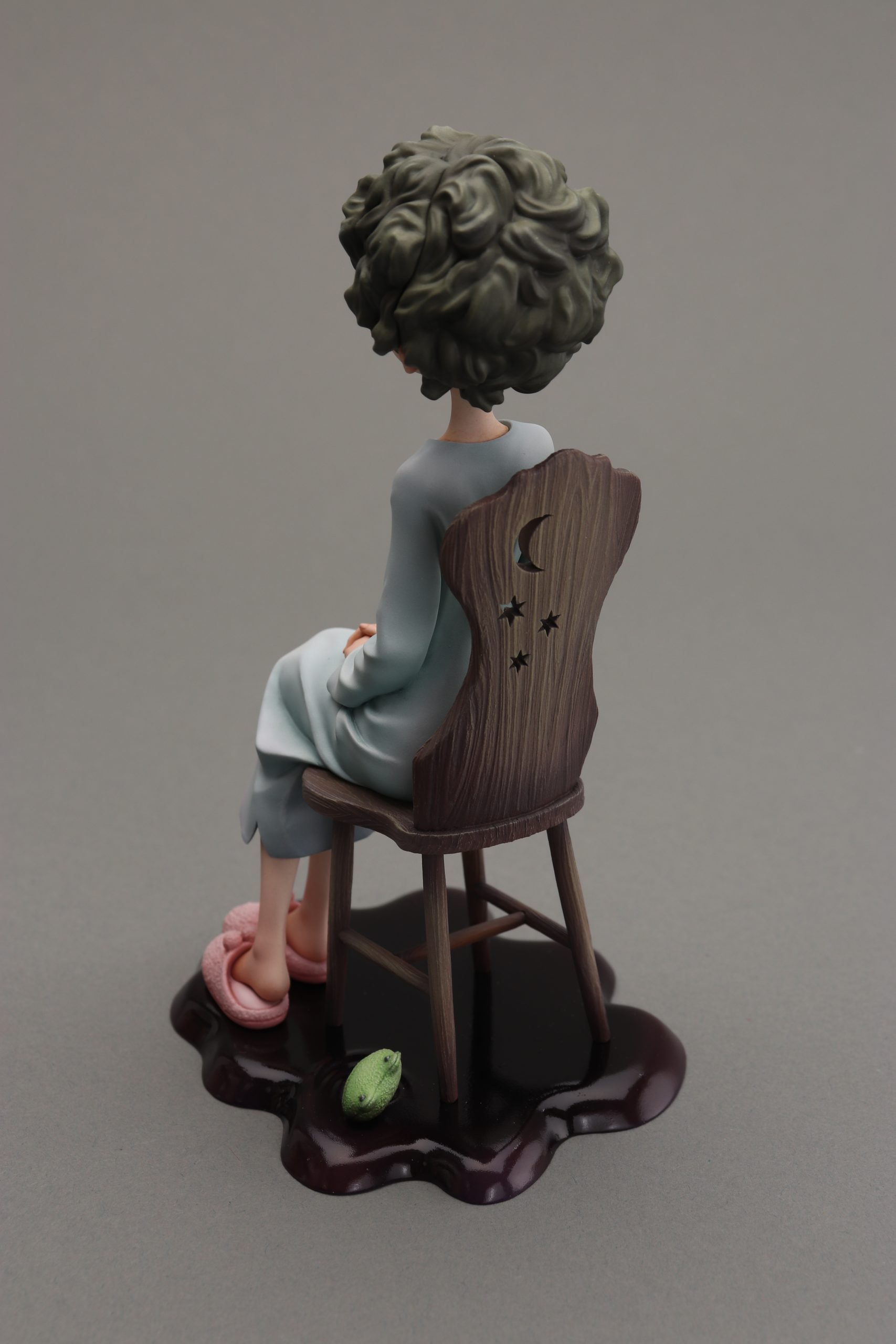 「A little spooky night -premonition-」 2023 ひんやりと、少しづつ広がる夜の予感―― -beginning-と共に「夜」をテーマにした連作です。 作品集「BLINK」のための作り起こし作品です。 ZBrushで造形 phrozen sonic mighty 8kで出力 ラッカー・エナメル塗料で彩色 全高150mm