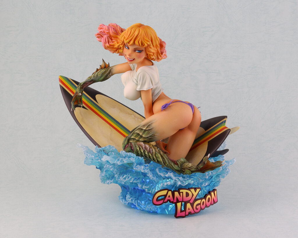 「Candy Lagoon」 2019 半魚人の女の子。うかつに近づくと大変なことに… クリアー成型の波やうっかり近づいた被害者であるサーファーなど、テンションの高い作品になりました。 ZBrushで造形、Form2で出力 原型をレジンキャストで複製後、ラッカー・エナメル塗料で彩色 全高約190mm