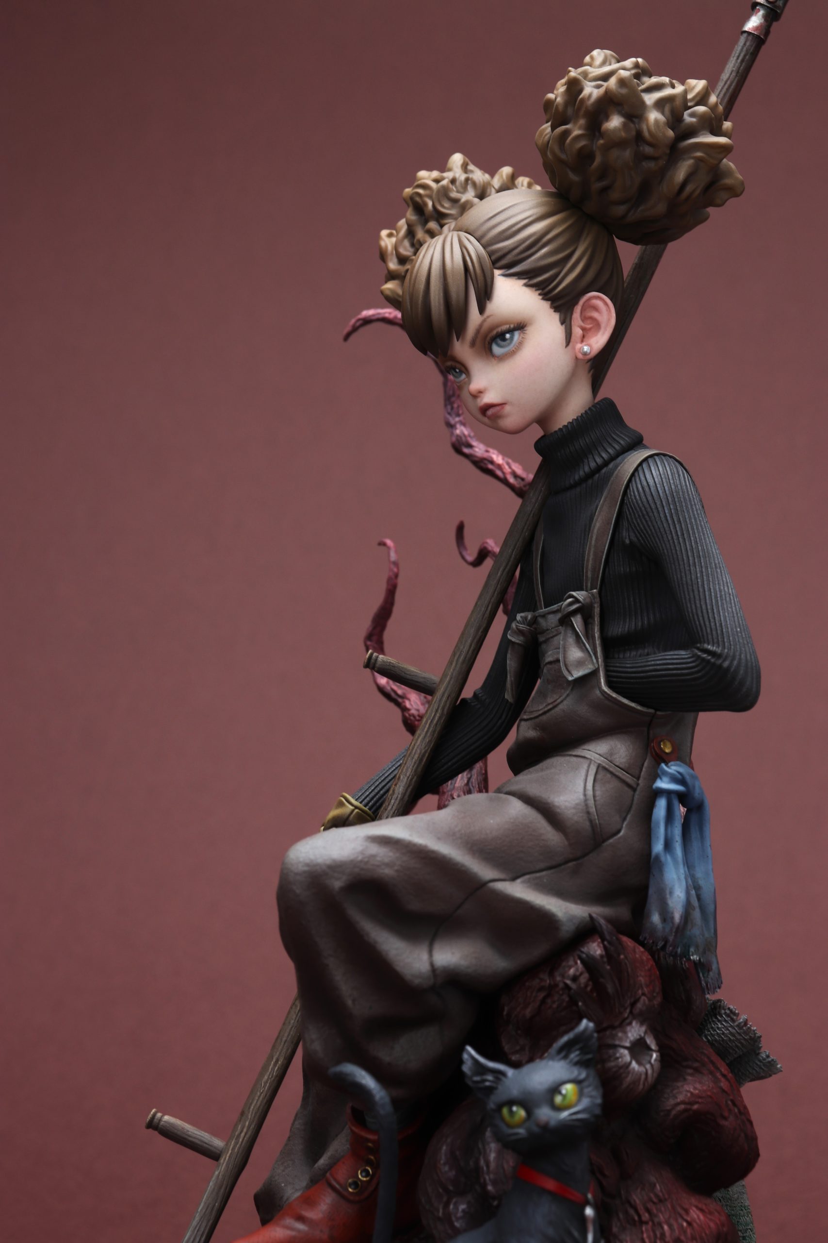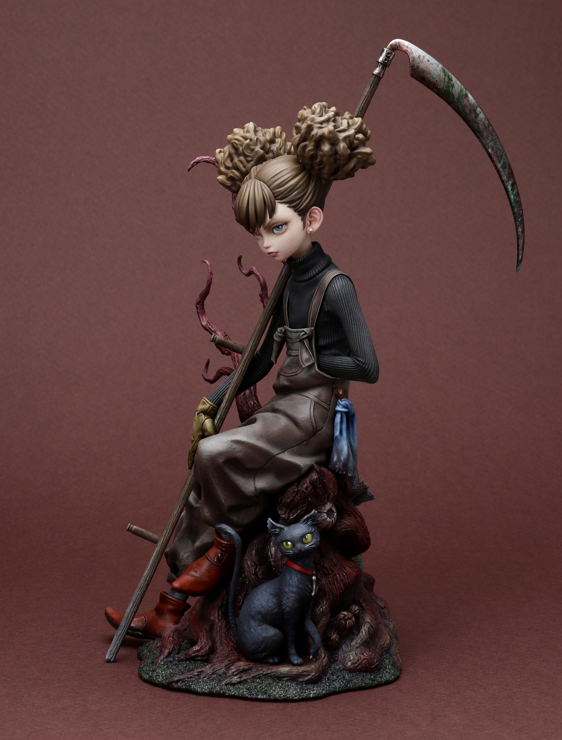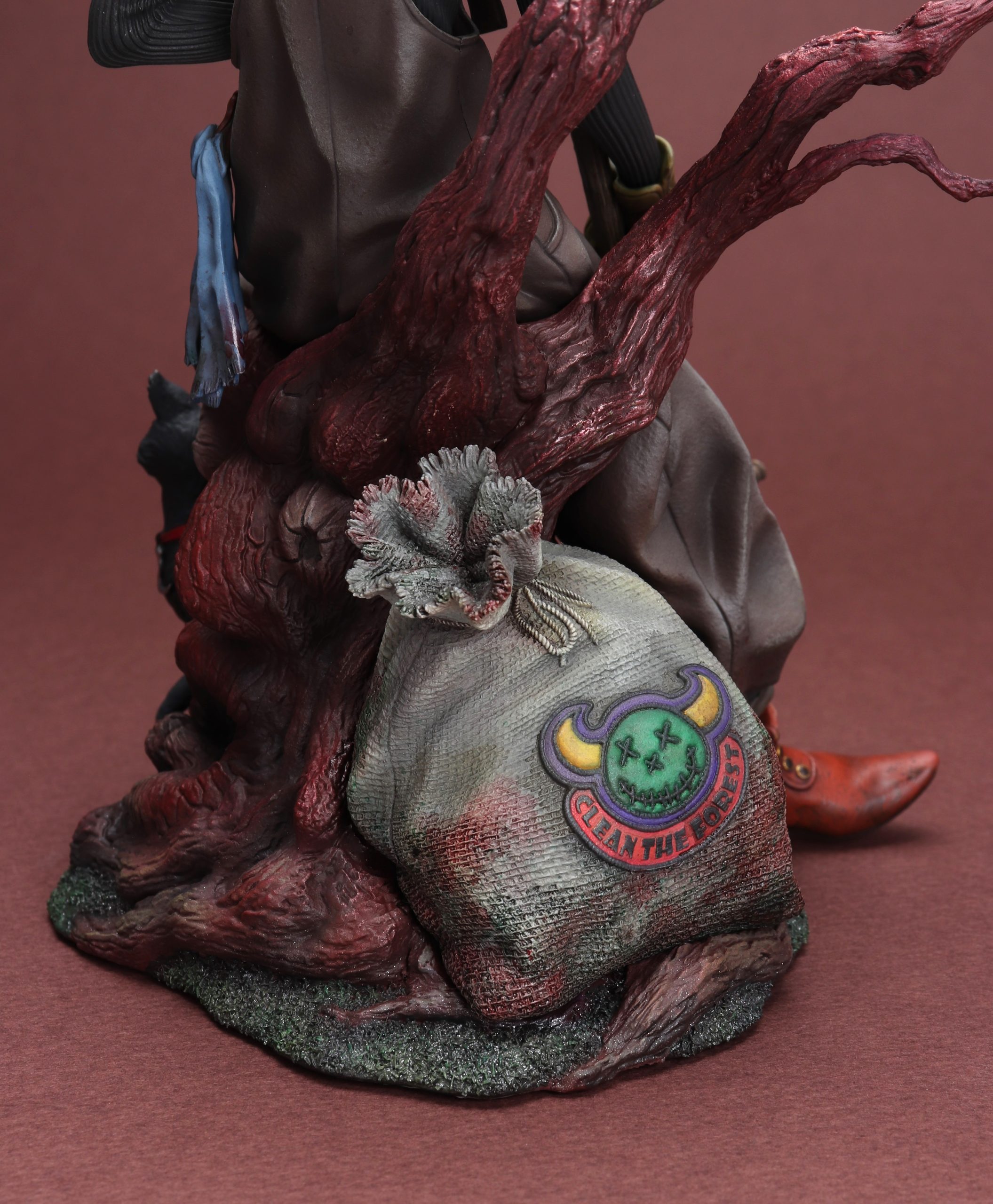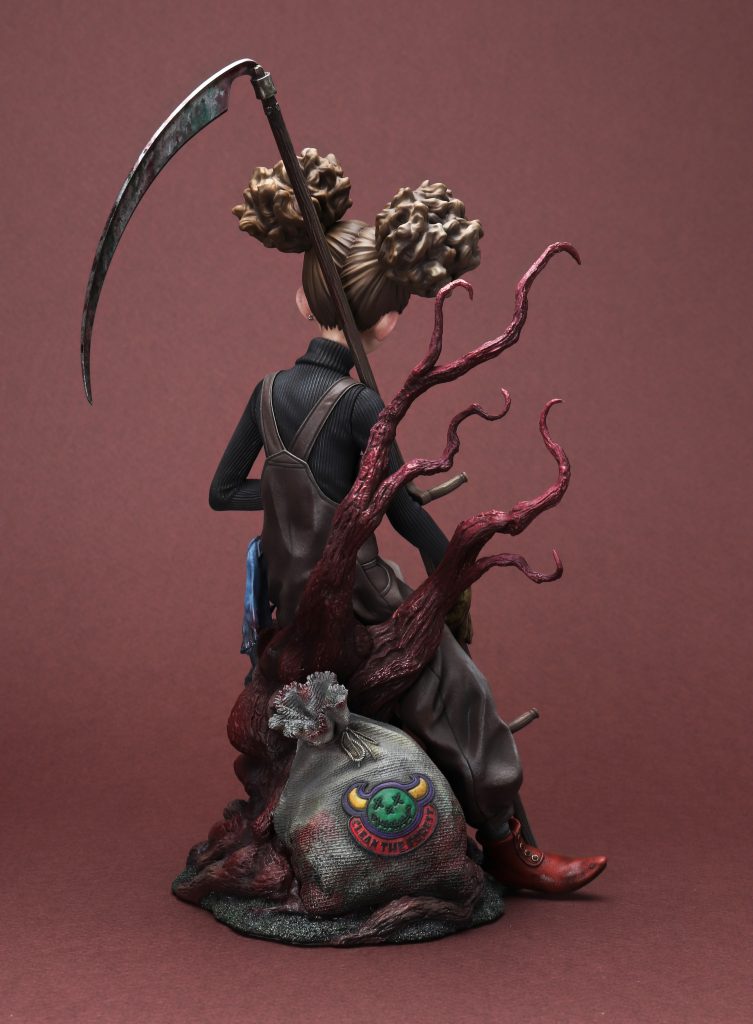 「CLEANER」 2024 ひと仕事終えた森の掃除人、木に腰かけて一息……という感じでしょうか。 人形アニメーションの様なムードを目指して制作しました。久々のダークファンタジーな世界観、楽しんで作りました。 sum-artより完成品スタチューとして発売されます。 ZBrushで造形、ELEGOO Saturn 3 Ultraで出力 ラッカー、エナメル塗料で彩色 全高225mm