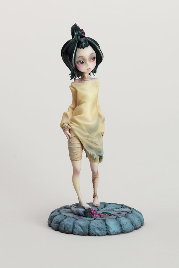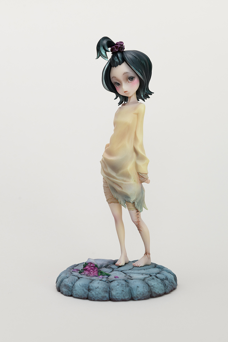 「Little Bride」 2014 前作までとは打って変わってのディフォルメスタイル。 勢いのあるラインやシワの造形、ベースの花束と視線でもう一人の登場人物を想像させるなど、今でも気に入っている作品です。 2014年冬のWFで展示販売。あの大雪のWFということもあって、思い出深い作品です。 スカルピー・ポリエステルパテで造形 原型をレジンキャストで複製後、ラッカー・エナメル塗料で彩色 全高約 175mm