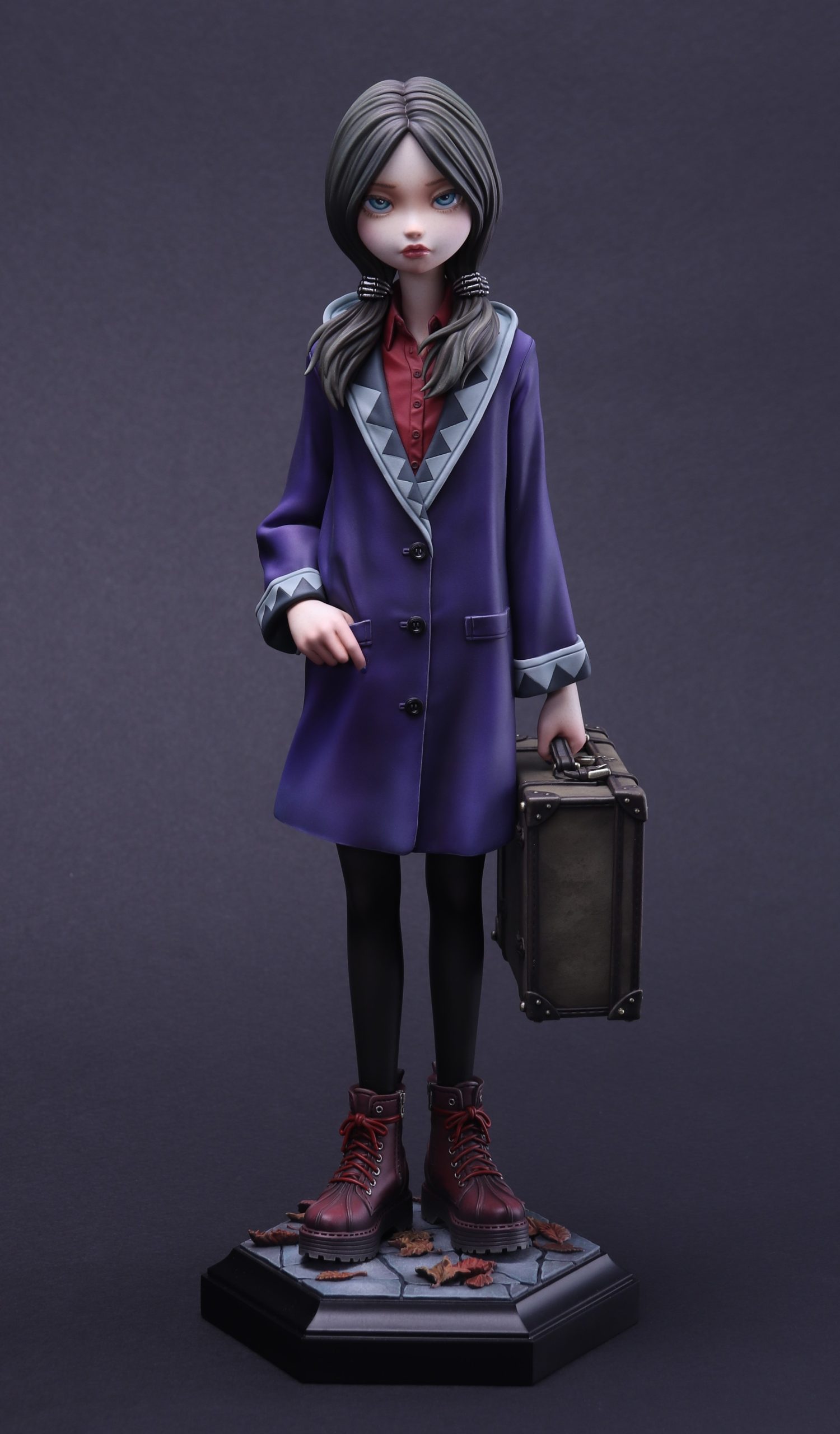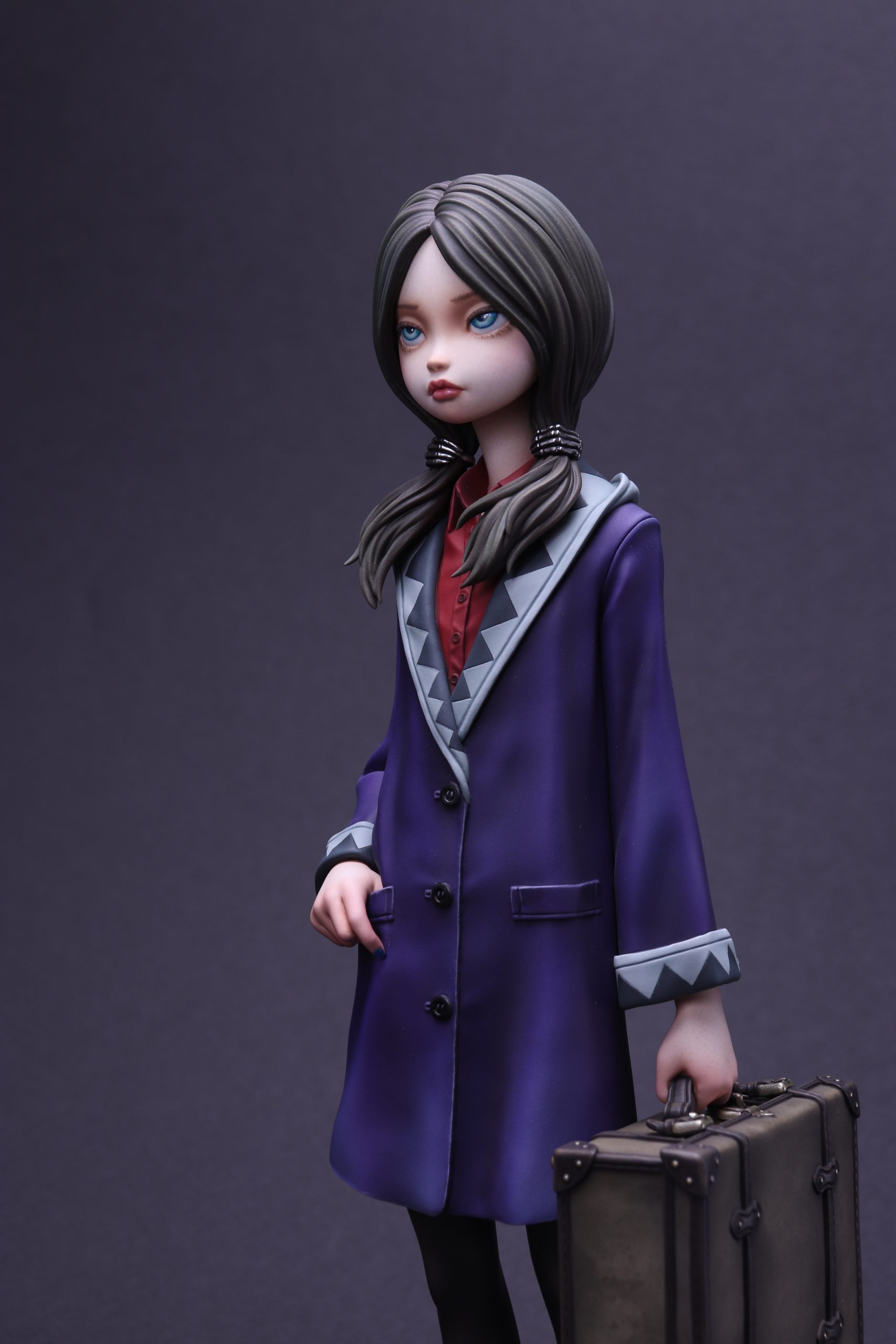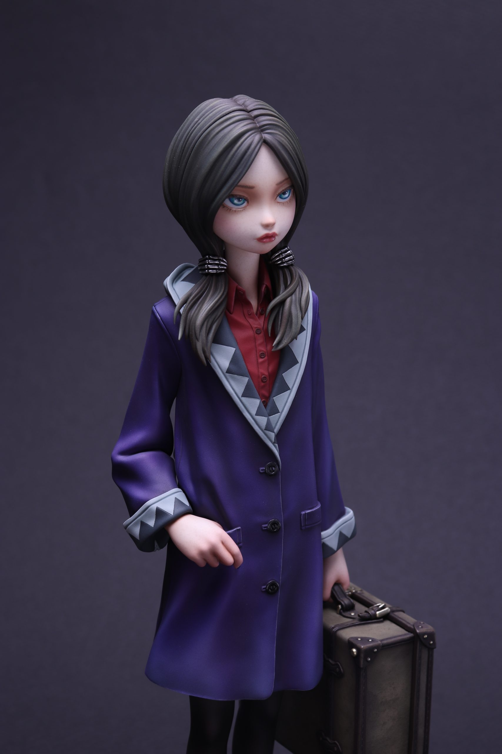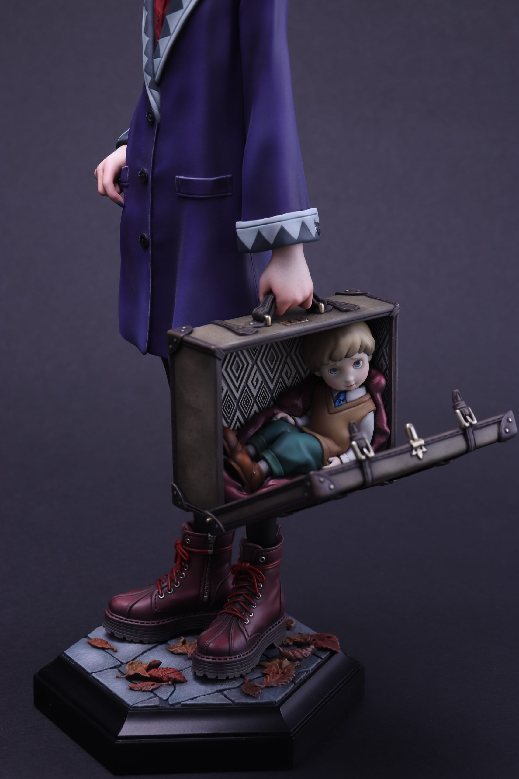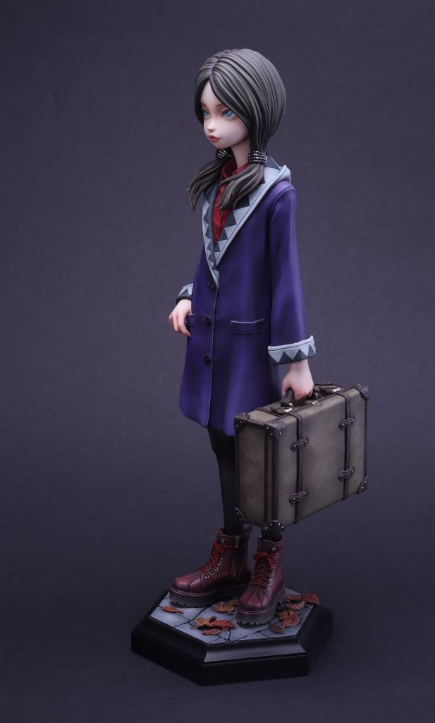 「神隠し~Whispers on the Wind~」 2025 ここ最近、あの街では姿を消す子供が増えているらしい―― シンプルな立ち姿ですが、不気味で不穏な情景を感じさせるムードを目指しました。 トランクは開閉式で、タイトルの秘密が隠されています。 ZBrushで造形、ELEGOO Saturn 3 Ultraで出力 ラッカー、エナメル塗料で彩色 全高254mm