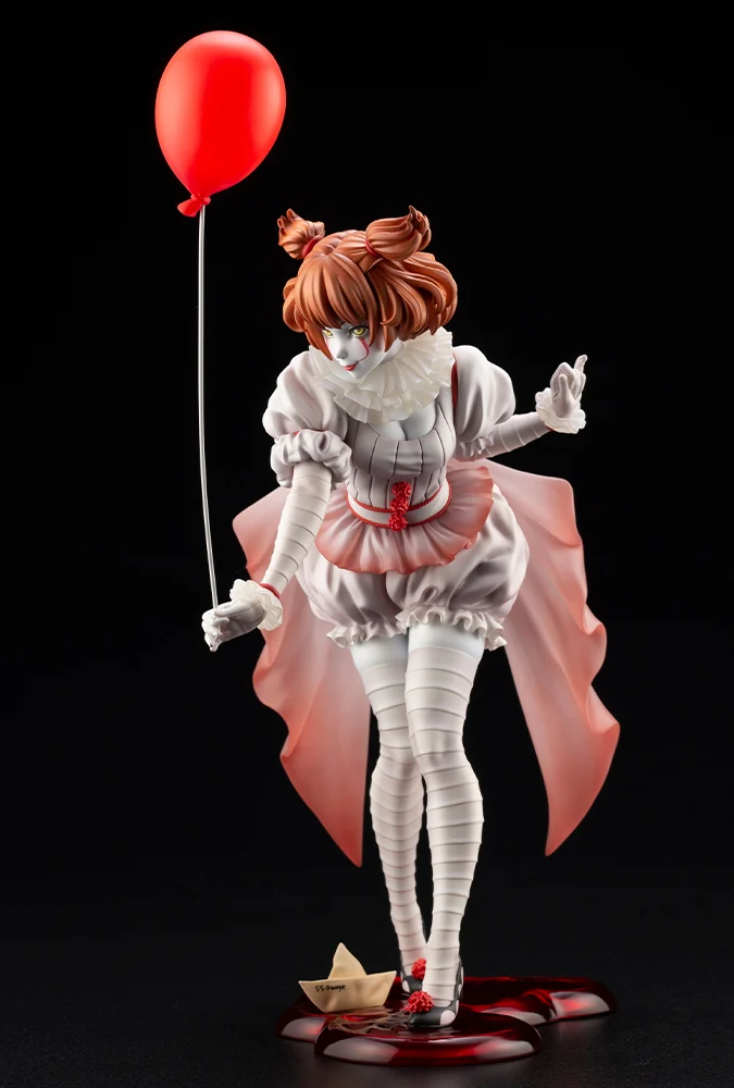 「HORROR美少女 ペニーワイズ(2017)」 2022 コトブキヤの人気シリーズ、HORROR美少女で登場のペニーワイズ。 山下しゅんやさんによるキュートなアレンジはとにかく造形意欲を掻き立てられました。 クリアー成型のフリルや台座の美しさ、眺めていて飽きない製品に仕上がっています。 全高約255mm