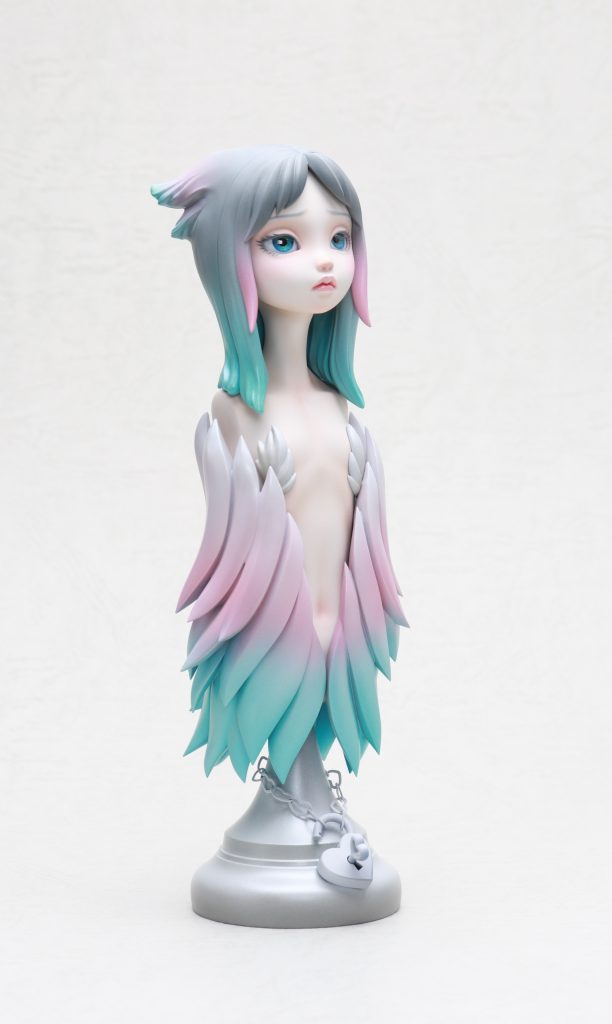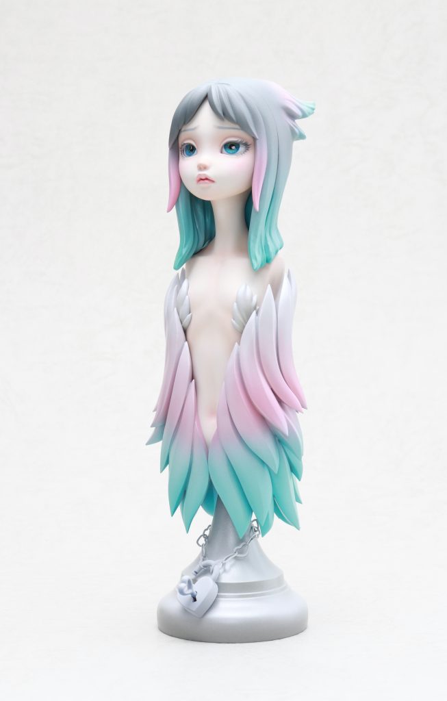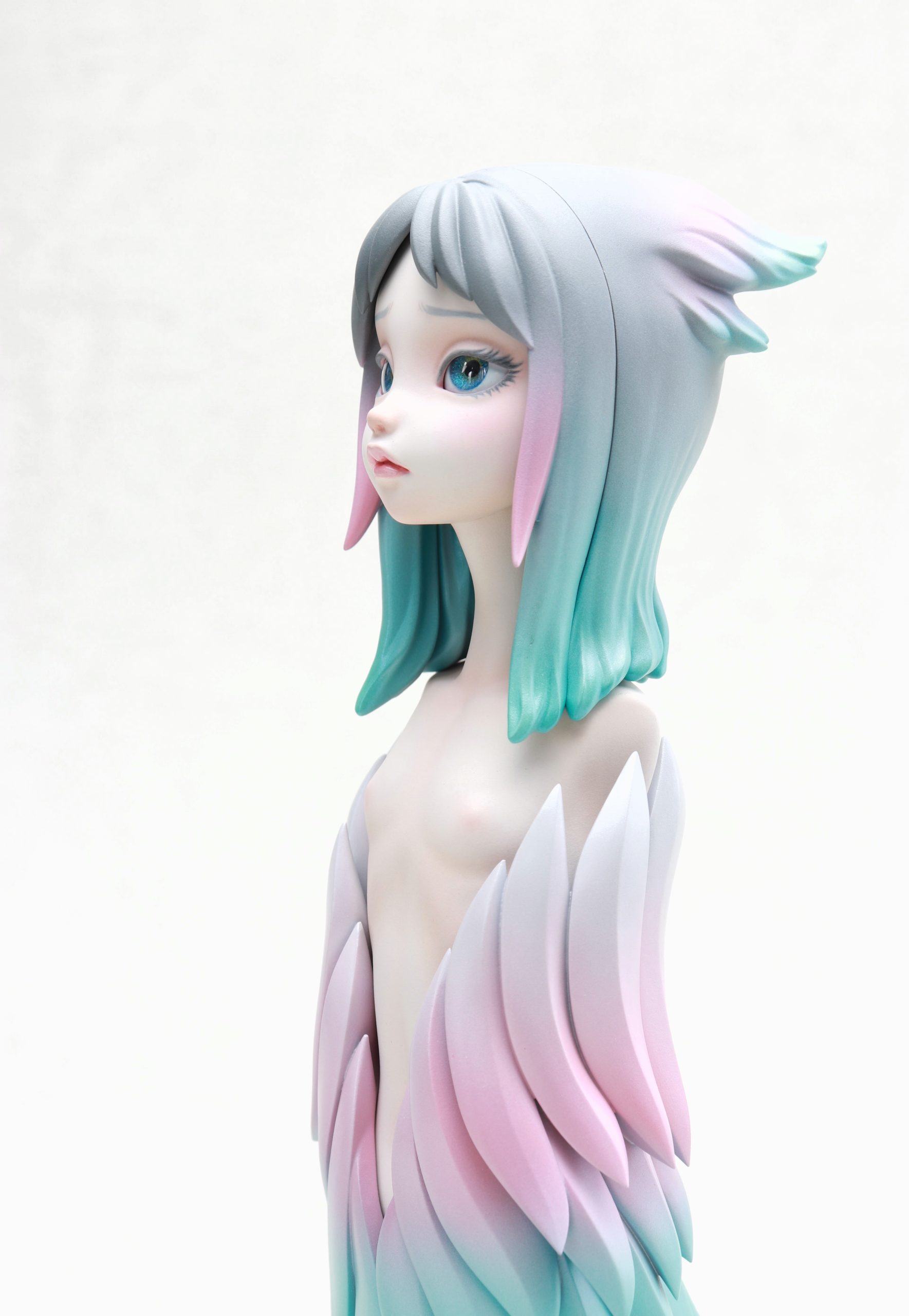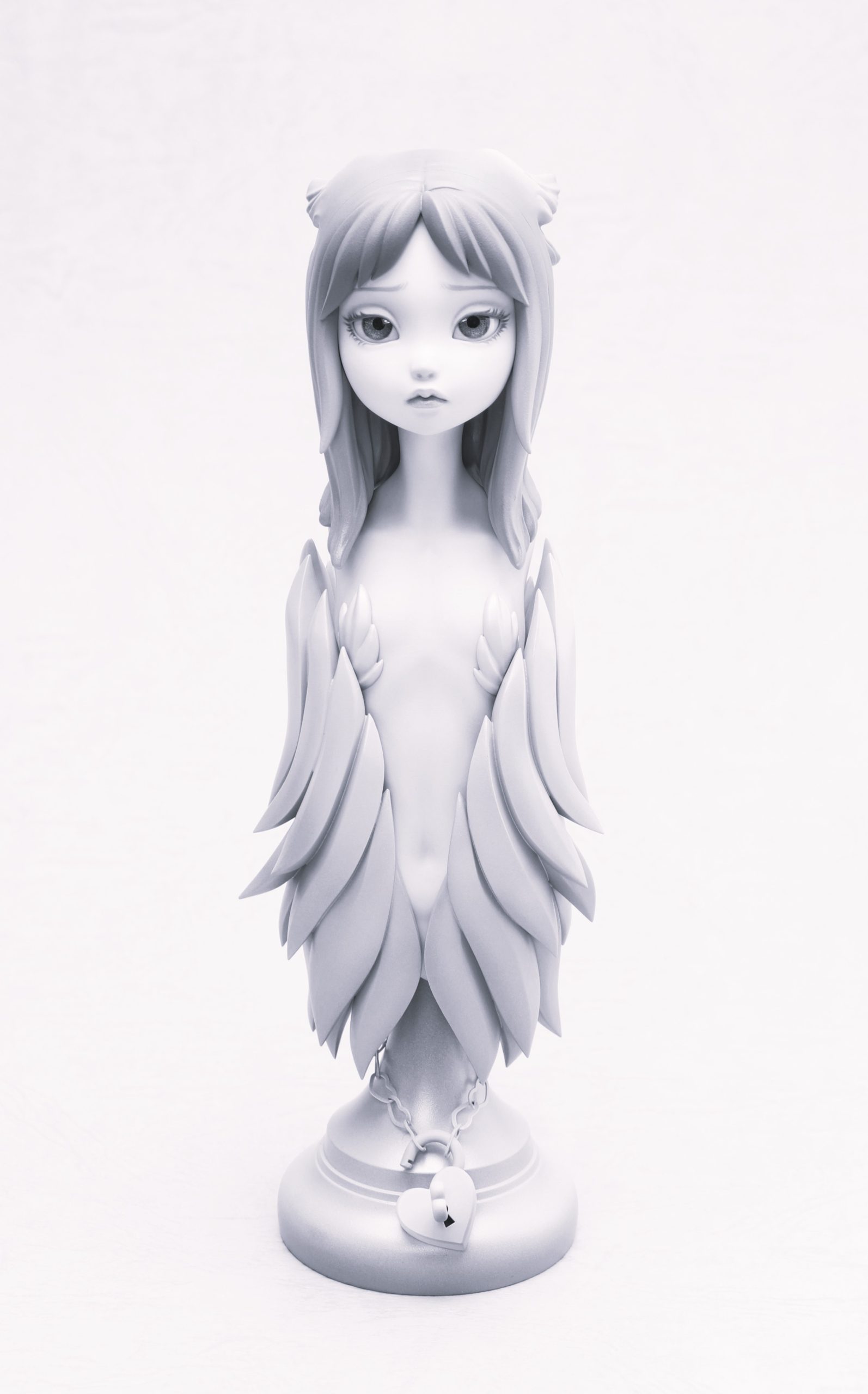 「Wish」 2024 以前より試したかった自家製ドールアイ。 クリアレジンではなく透明塩ビ版のバキュームフォームで表現しました。 心の鎖は、きっともう外れているはず―― そんな想いを込めています。 ZBrushで造形、ELEGOO Saturn 3 Ultraで出力 ラッカー、エナメル塗料で彩色 全高193mm